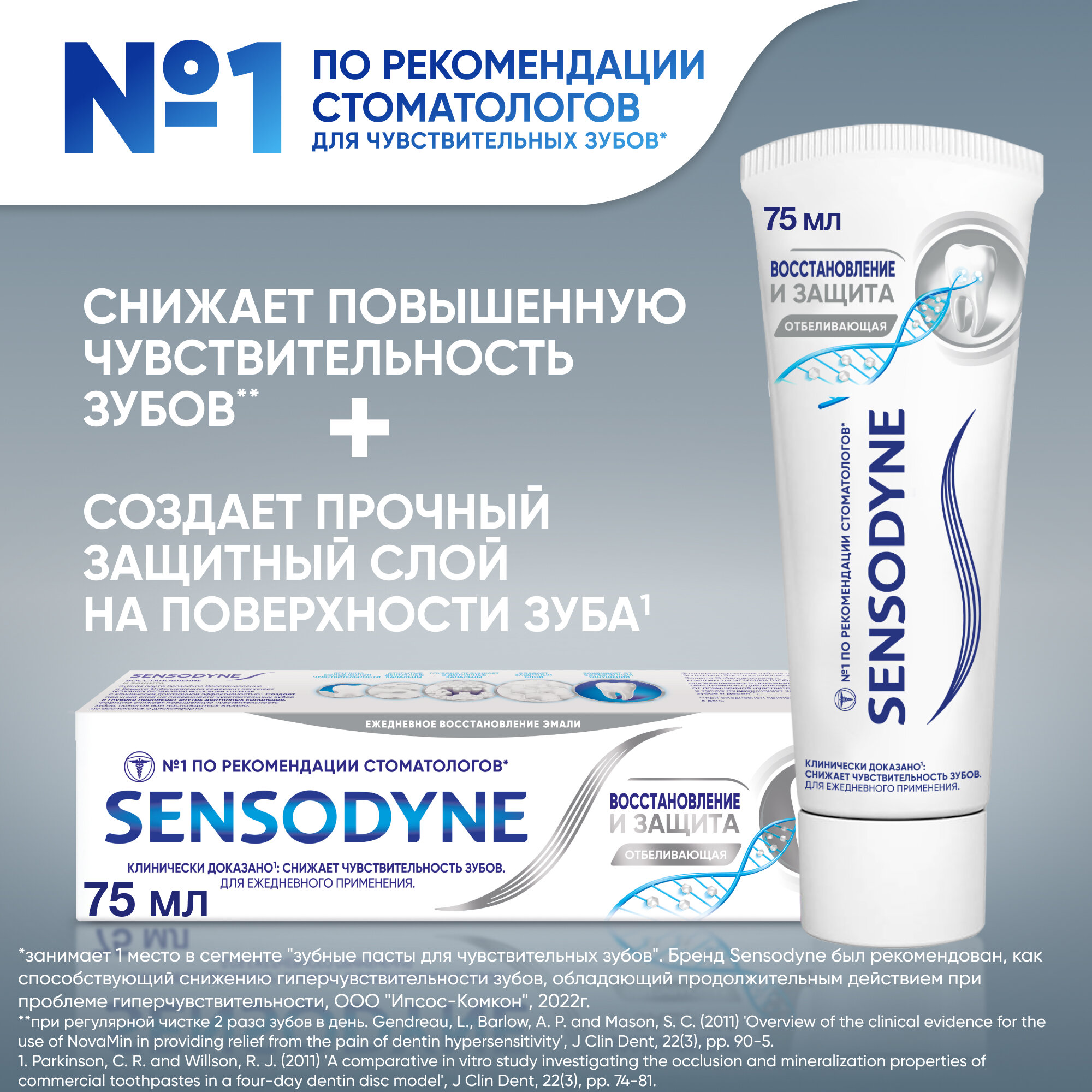 10 цен на Зубная паста Sensodyne Восстановление и Защита Отбеливающая для чувствительных зубов с кальцием и фтором, для защиты от кариеса, 75 мл*2шт