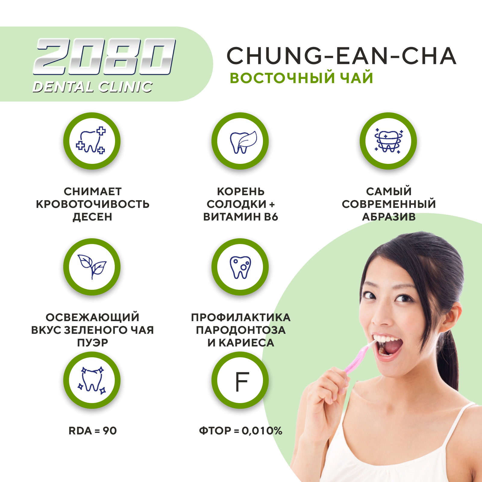 Отзывы на Dental Clinic 2080 Набор Зубная паста для чувствительных зубов и защиты десен с фтором Восточный чай, 2 шт x 130 гр