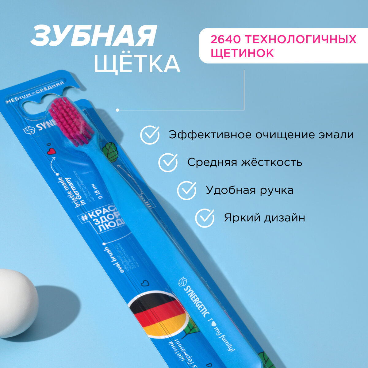 | Дополнительная информация | перед применением новую зубную щётку промыть в тёплой воде с мылом, хранить щётку в вертикальном положении щетиной вверх, рекомендуемый срок использования: 2–3 месяца |