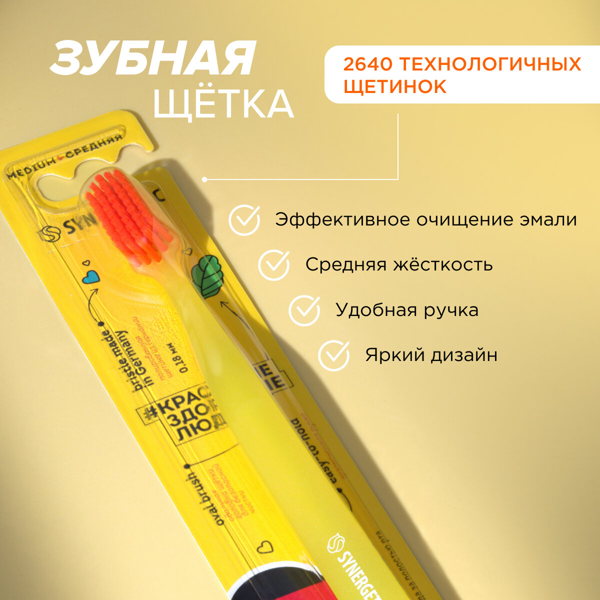 Зубная щетка Synergetic JBrush, для взрослых, средняя жесткость, пластик, желтая 211 ₽