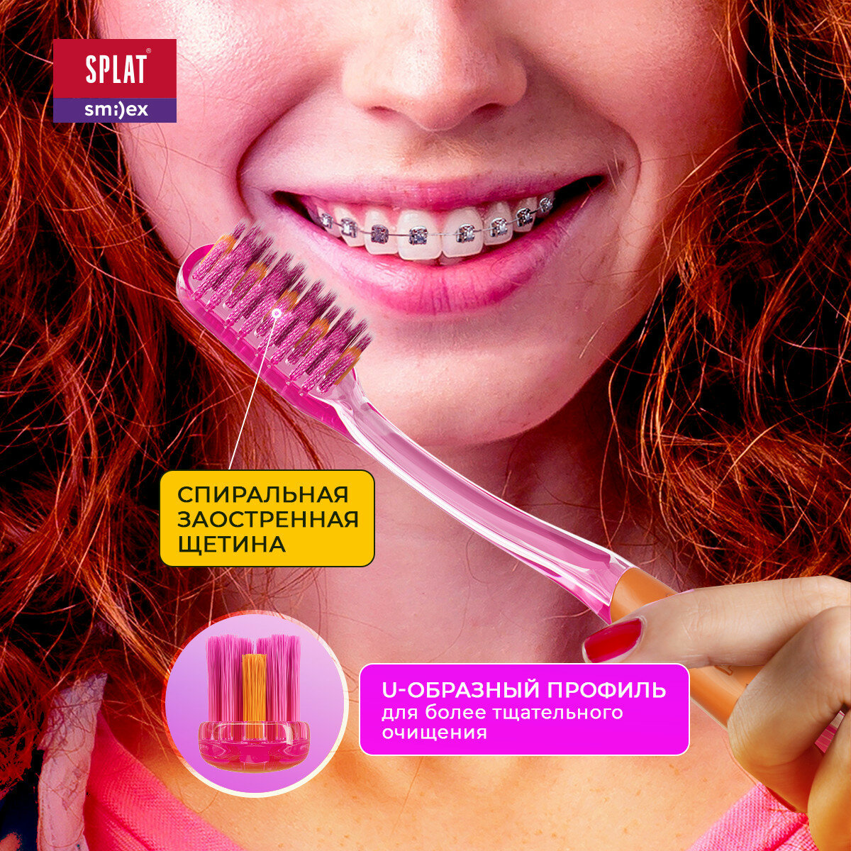 10 цен на SPLAT SMILEX ORTHO+ Soft ортодонтическая зубная щетка (Розовый)