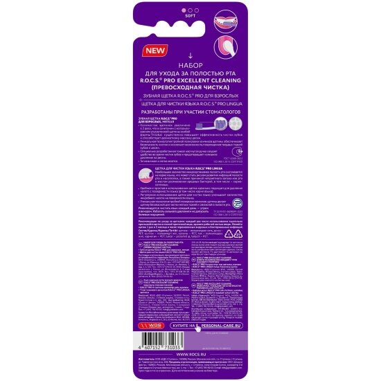 | Дополнительная информация | в наборе: щетка R.O.C.S. PRO" мягкая - 1 шт., щетка для чистки языка R.O.C.S. PRO Lingua - 1 шт. |