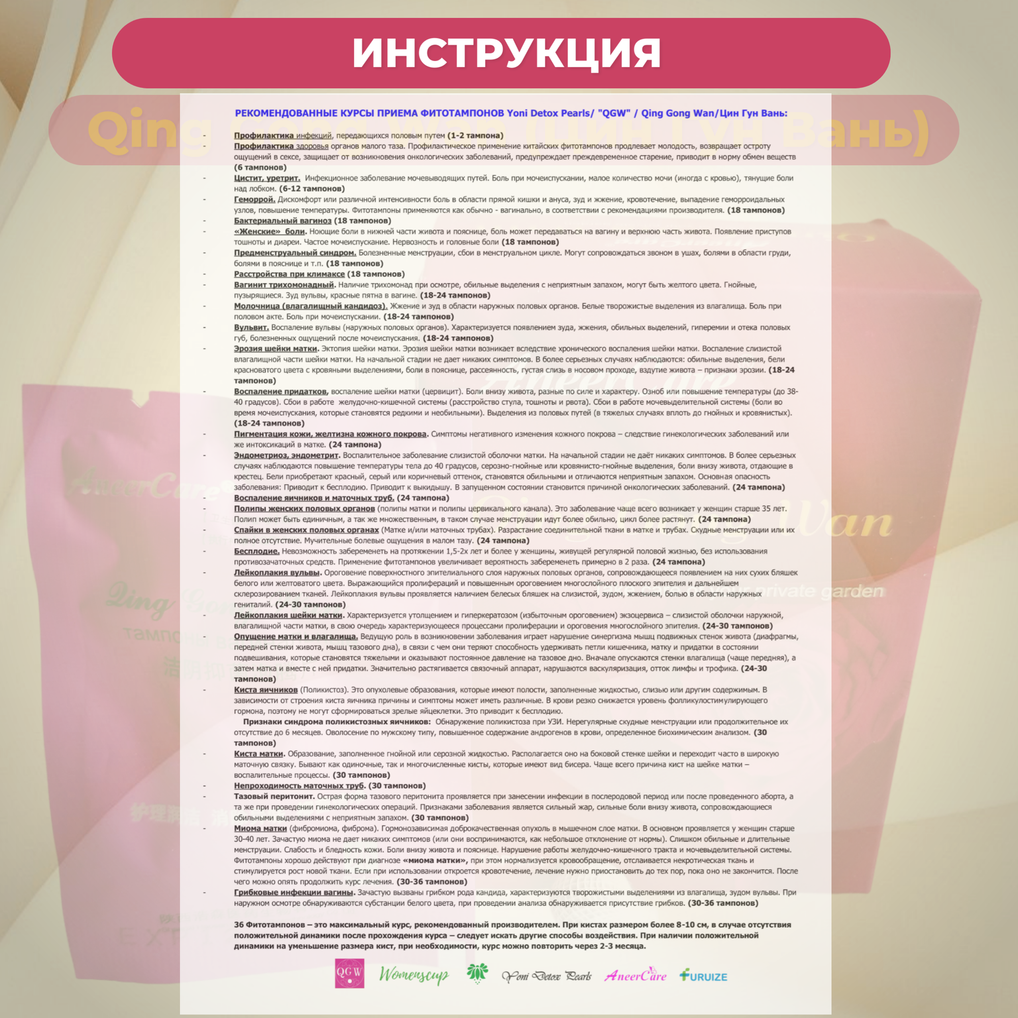Фито тампоны оригинальные китайские "Qing Gong Wan" (Цин Гун Вань) Womenscup, 6 шт, без коробки. Фито тампоны женские травяные лечебные гинекологические информация: