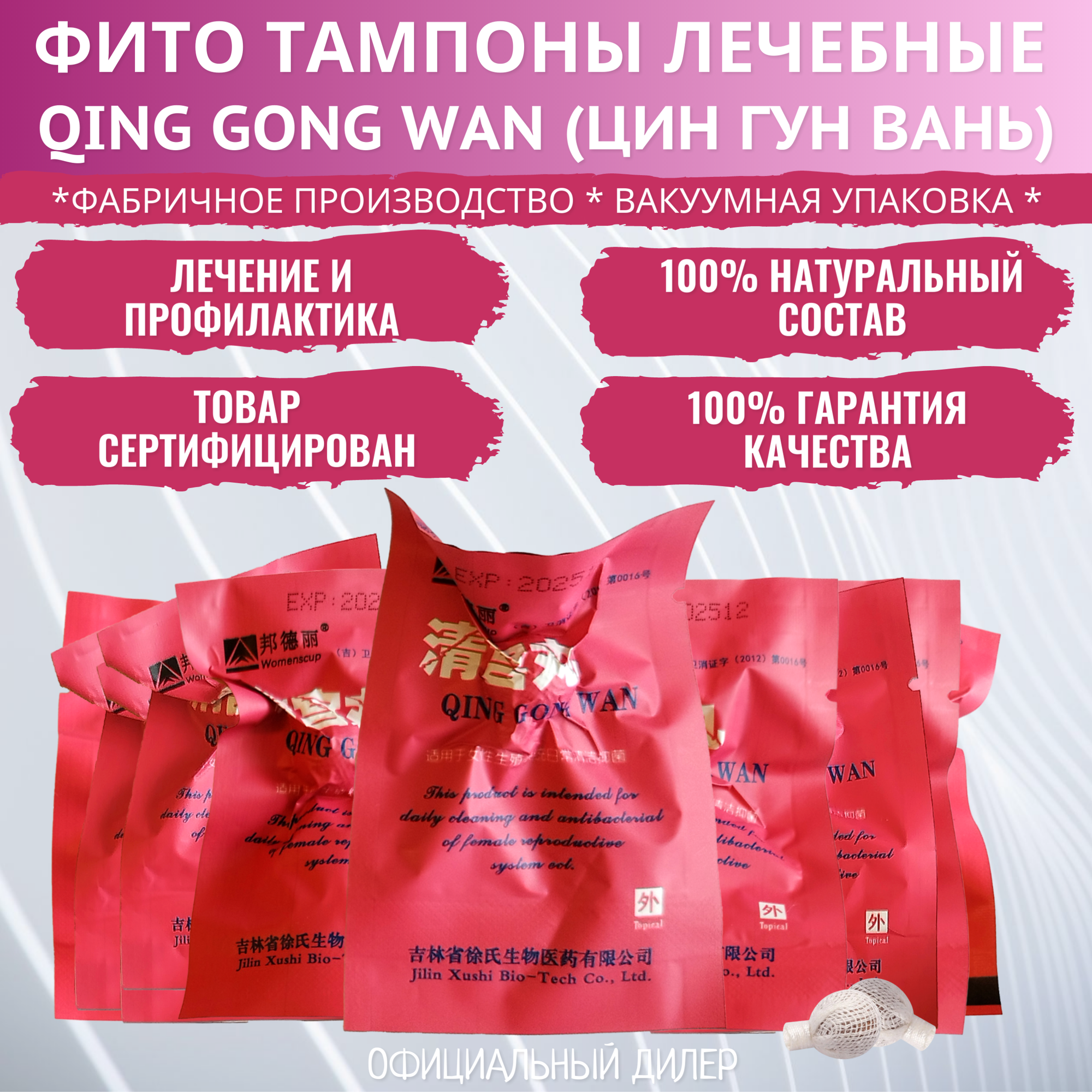 Фито тампоны оригинальные китайские "Qing Gong Wan" (Цин Гун Вань) Womenscup, 10 шт, без коробки. Фито тампоны женские травяные лечебные гинекологические информация: