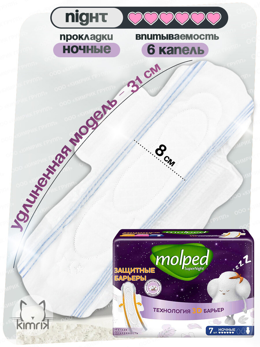 Molped прокладки Supernight Super Long, 7 капель, 5 шт.