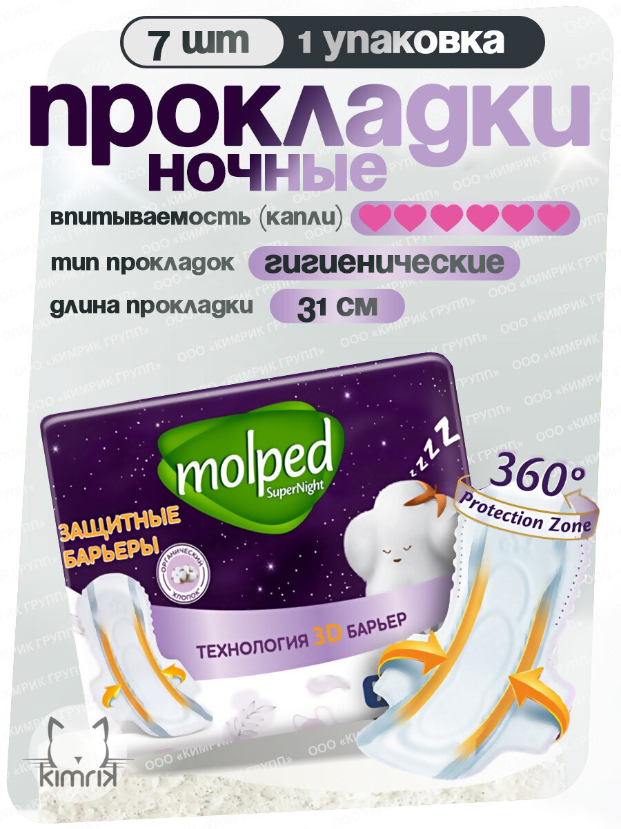 MOLPED прокладки SuperNight Super Long, 7 капель, 5 штук 305 ₽