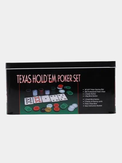 | Дополнительная информация | Покерный набор состоит из 200 фишек. Набор для покера содержит две колоды, каждая из которых включает 54 карты, выполненные из качественного АБС пластика и покрытые ярким износостойким изображением. В комплект также входят малый и большой блайнды, фишка дилера и настоящее зеленое сукно прямоугольной формы с необходимой для игры разметкой. Все это упаковано в жестяную коробку с крышкой, украшенную яркими тематическими изображениями. Имеются фишки номиналом 1, 5, 25, 50 единиц. Каждая фишка выполнена из качественного пластика. Количество фишек хватит на игру в большой компании. Сукно для покера выполнено из качественной ткани, на которой себя превосходно ведут карты и фишки. Зеленый цвет сукна отсылает к традициям казино и способствует созданию соответствующей атмосферы. На поверхности ткани имеется нанесенная разметка. Игра покер отлично подойдёт для игр с друзьями или семьёй. Производство Китай |