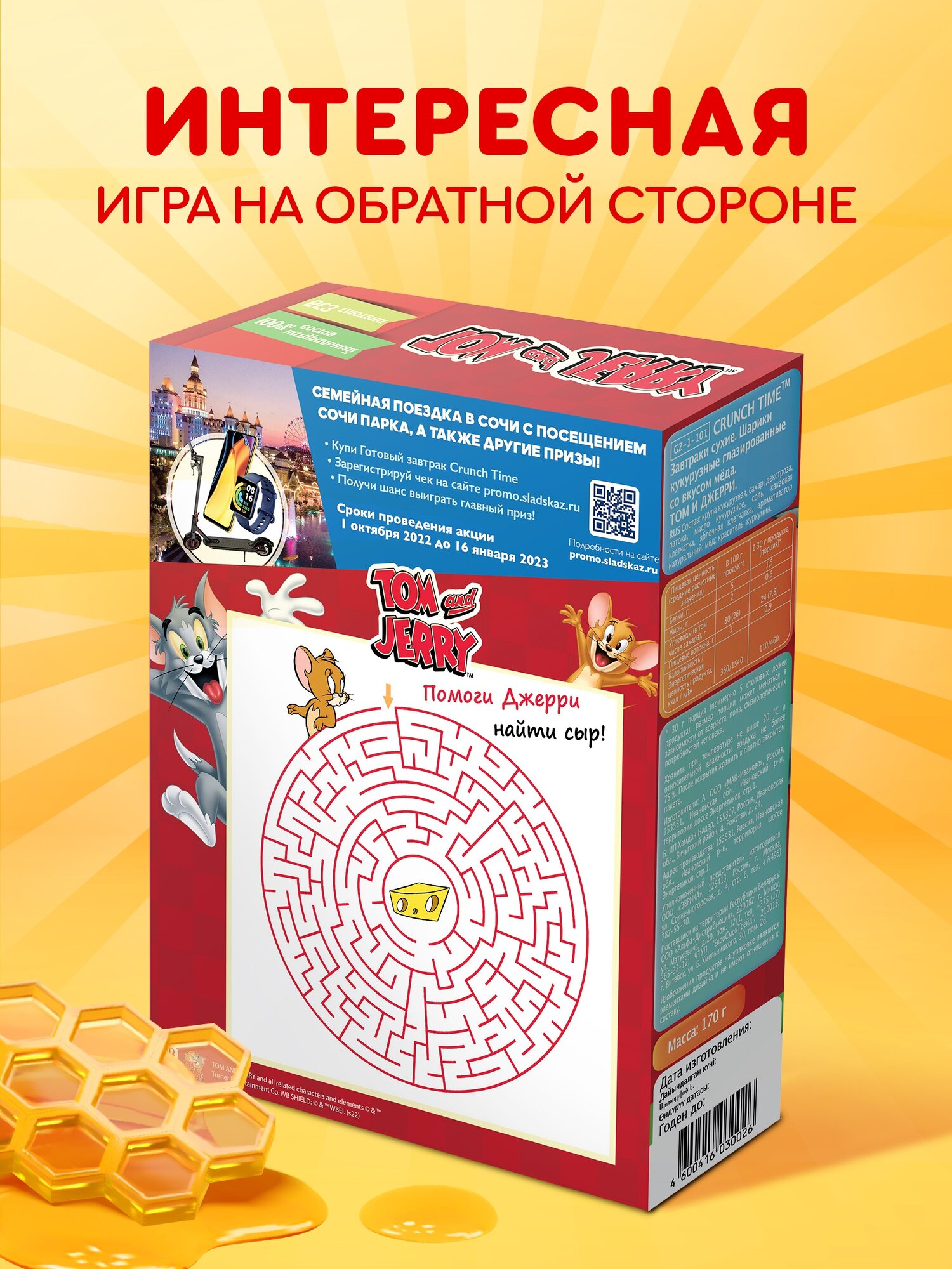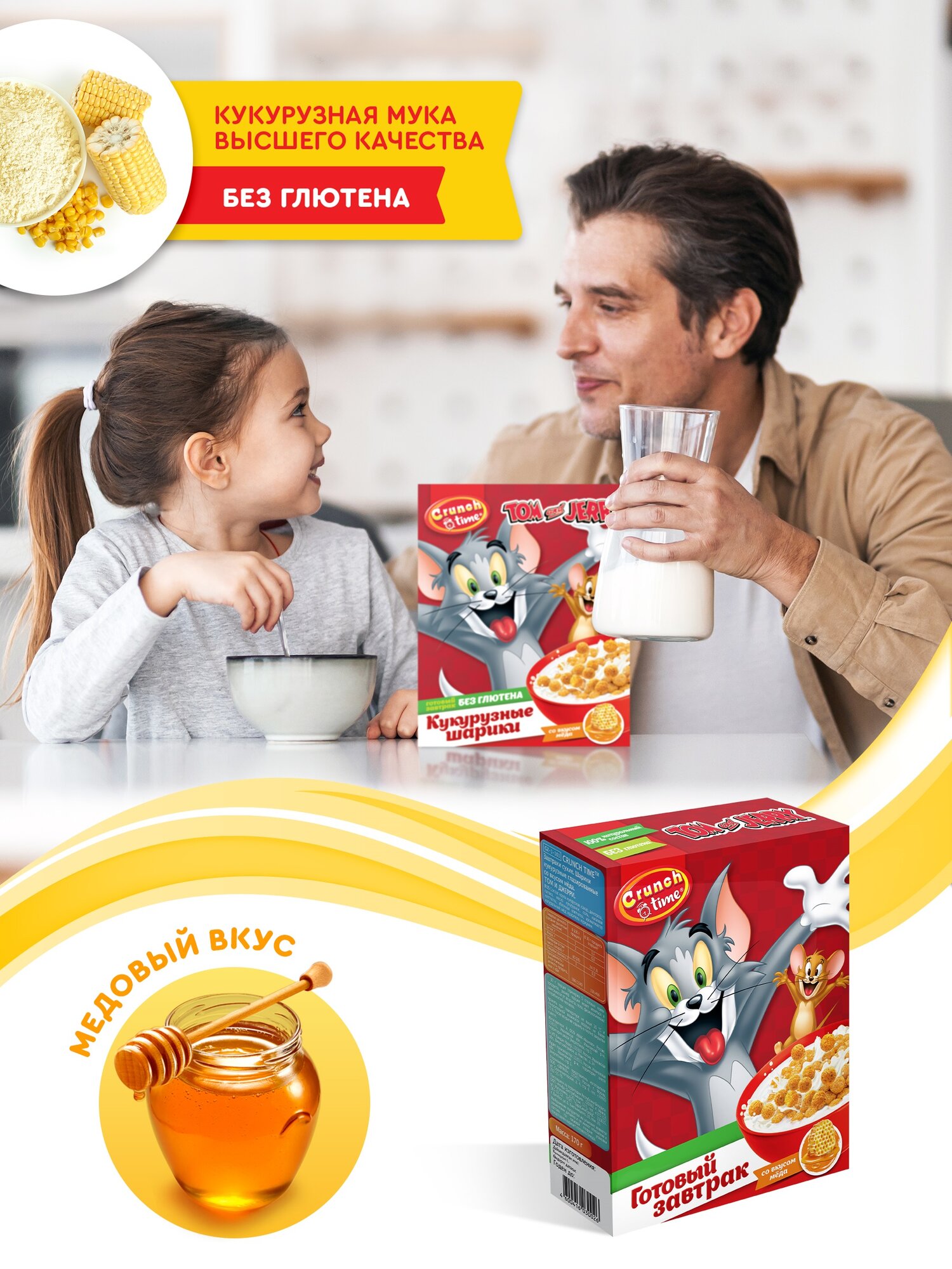 Натуральный сухой завтрак детский без глютена Медовые шарики Том и Джерри CRUNCH TIME 170 г информация: