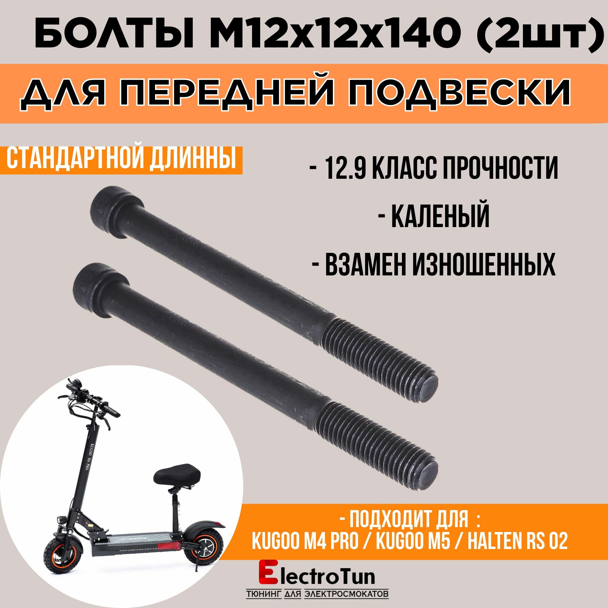 Винт M12 x 12 x 140 мм DIN912 для умягчения подвески электросамокатов (2шт) информация: