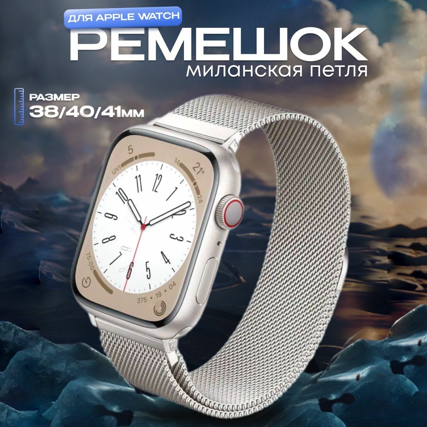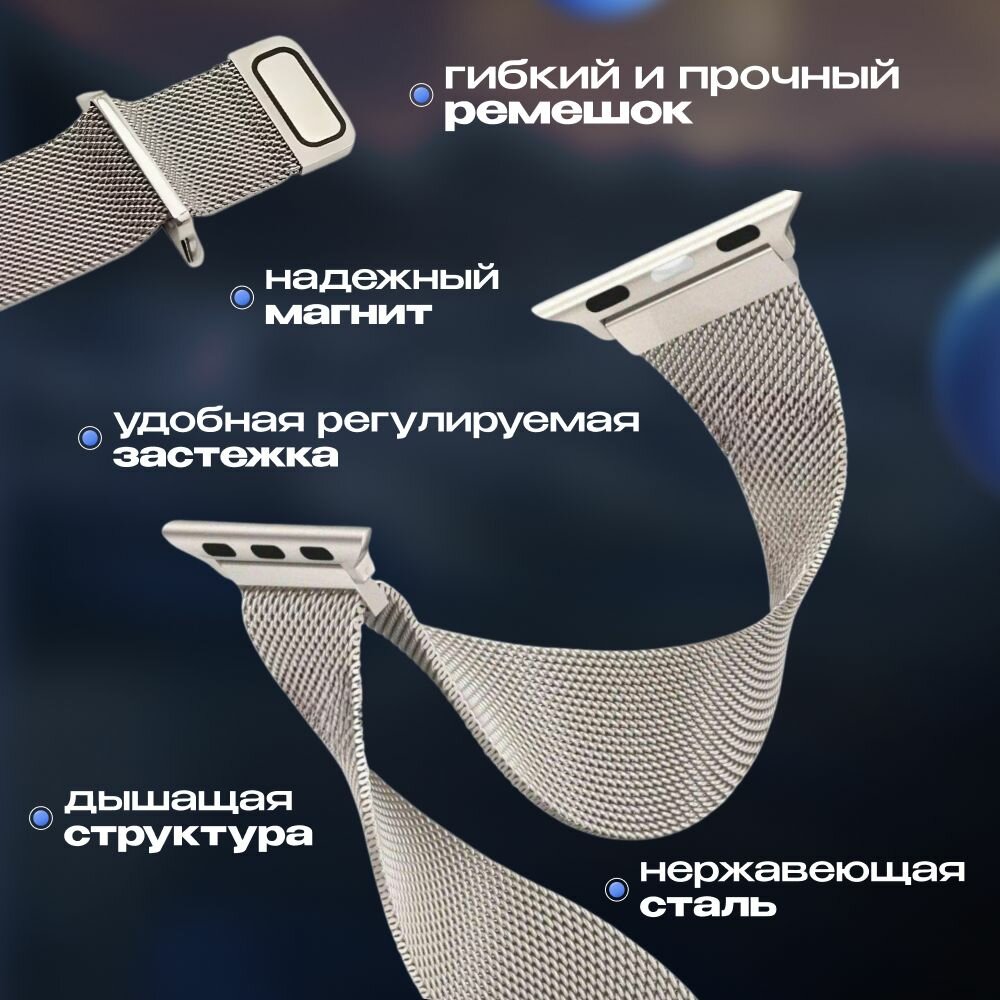 Отзывы на Ремешок Swap миланская петля для Apple Watch в корпусах 38 мм / 40 мм / 41 мм, Цвет: Звёздный свет (Сияющая звезда, Starlight)