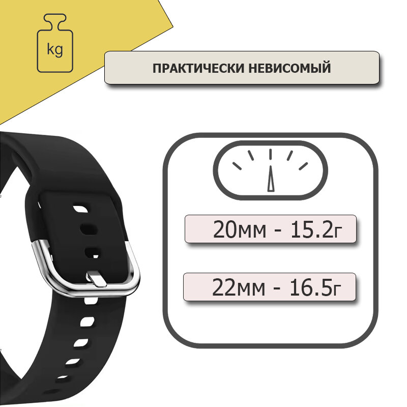 Ремешок для смарт-часов, фитнес-браслета универсальный 22 мм силиконовый браслет с пряжкой Xiaomi Samsung Huawei Honor, черный