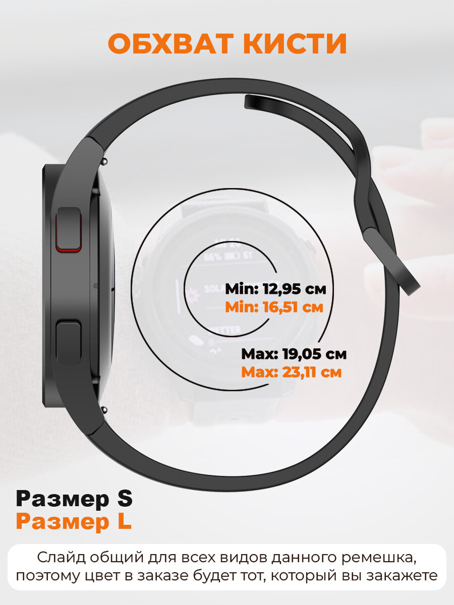 Силиконовый ремешок для Samsung Galaxy Watch 4/5/6, пряжка в цвет ремешка, размер L, черный 557 ₽