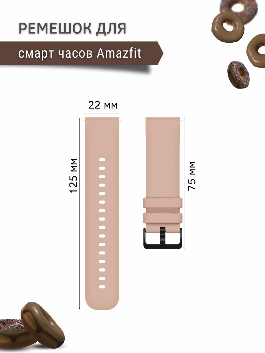 Ремешок для смарт-часов Amazfit шириной 22 мм, силиконовый, Gamma, пудровый информация: