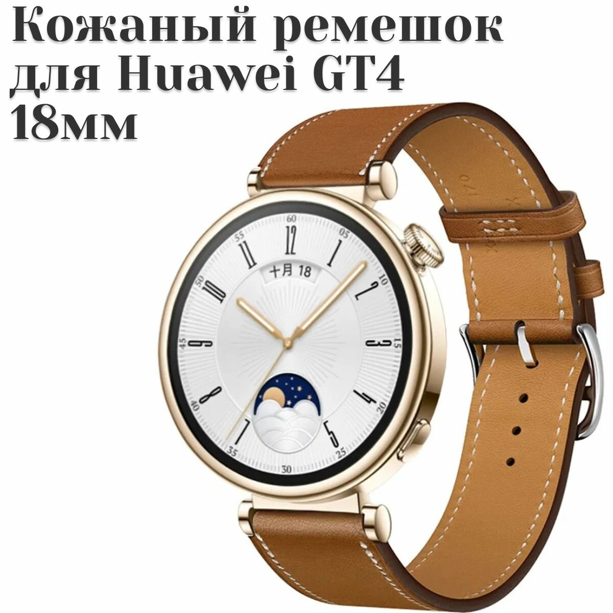 10 цен на Кожанный ремешок 18мм для Huawei watch gt 4, Galaxy Watch коричневый