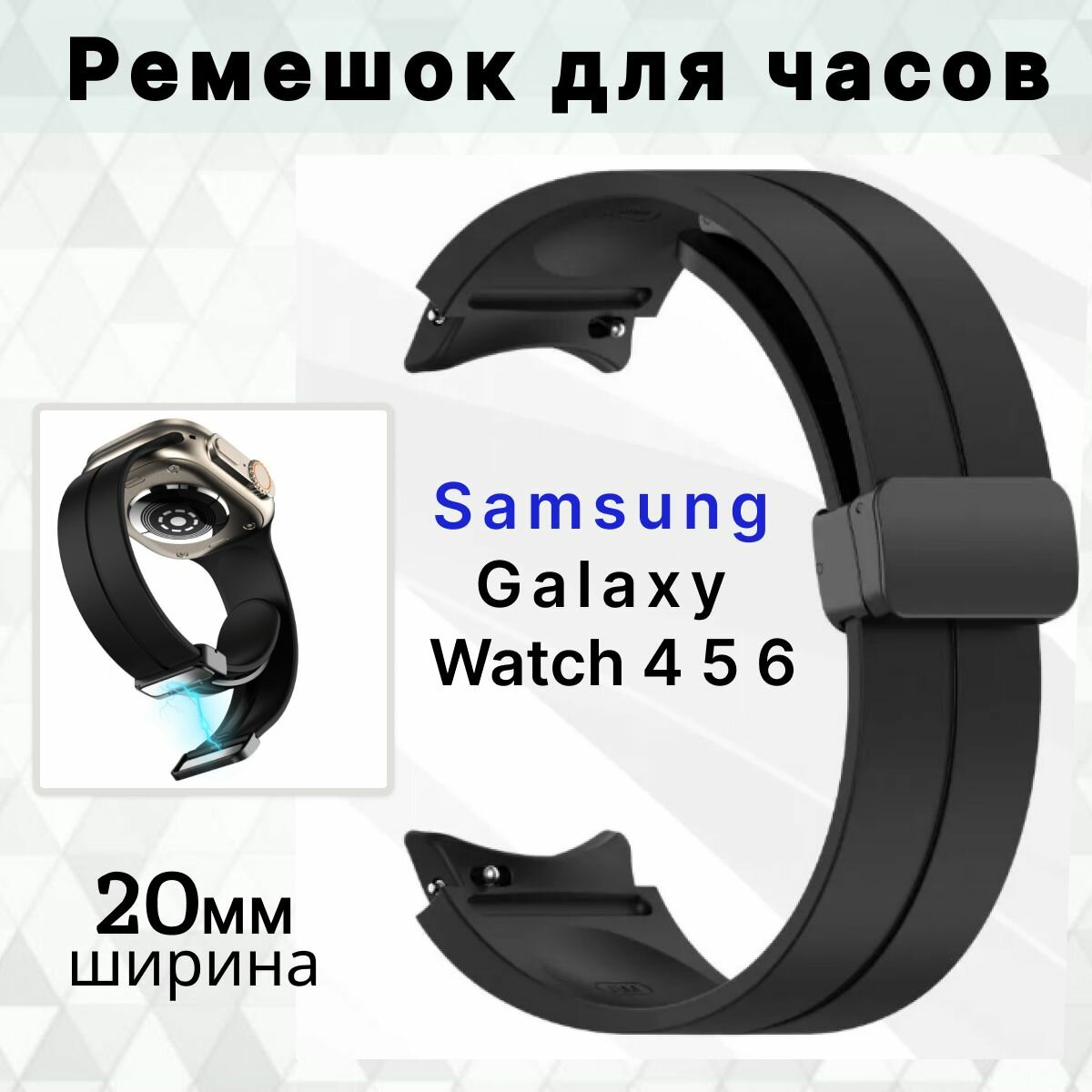 Силиконовый ремешок для часов Samsung Galaxy Watch 4 Classic 40 42 43 44 46 47 мм черный Браслет для самсунг галакси вотч 4, 5, 6. информация: