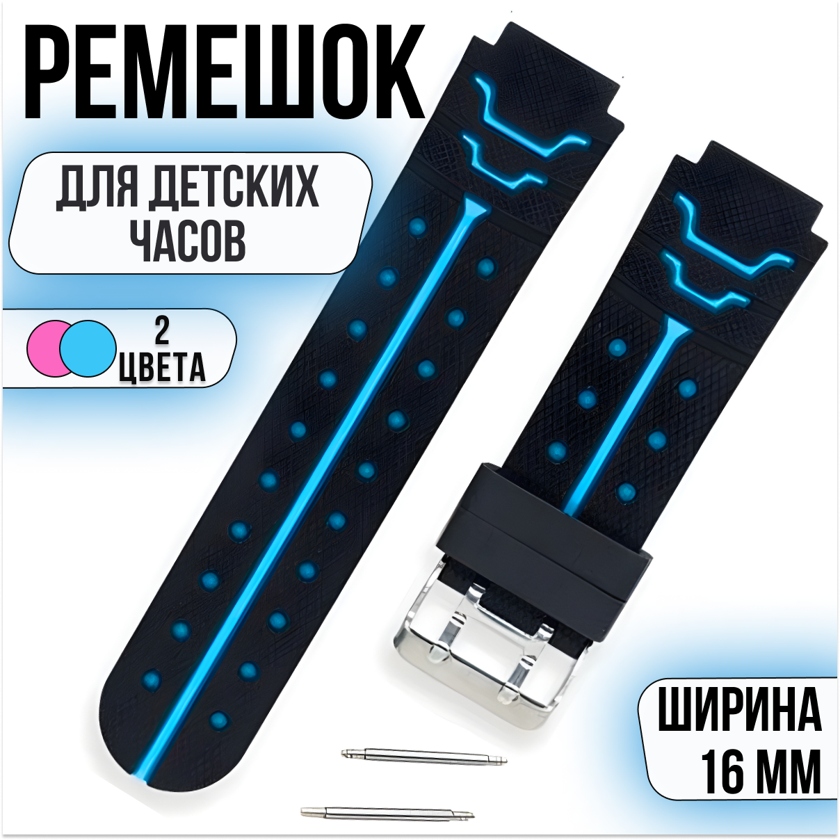 Ремешок для детских смарт-часов Geozon, Jet, Aimoto, Digma, Elari, Wonlex и других с шириной крепления 16 мм. информация: