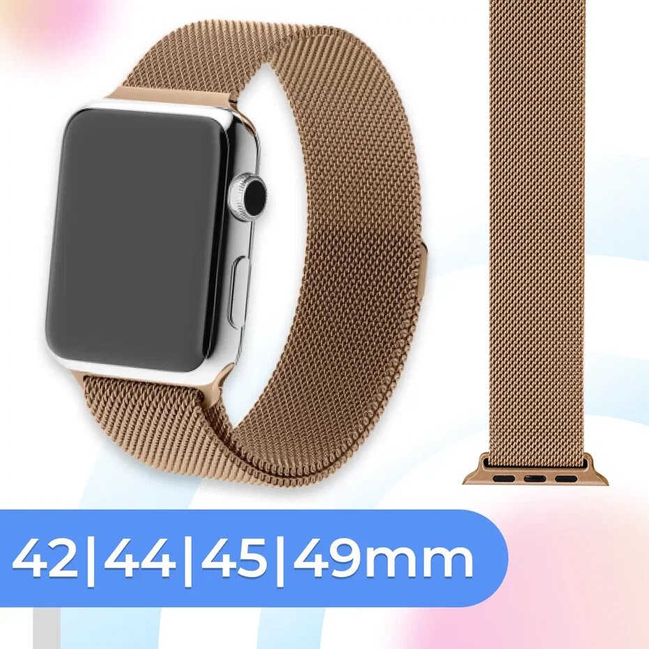 10 цен на Металлический ремешок для умных часов Apple Watch 42-44-45-49 mm / Сменный браслет миланская петля для часов Эпл Вотч 1-9, SE, Ultra серии / Золотой