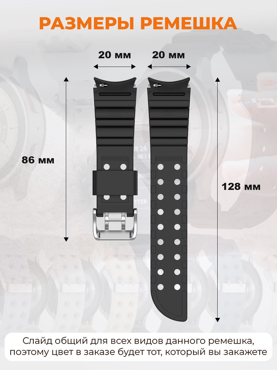 Ребристый силиконовый ремешок для Samsung Galaxy Watch 4/5/6, черный 499 ₽