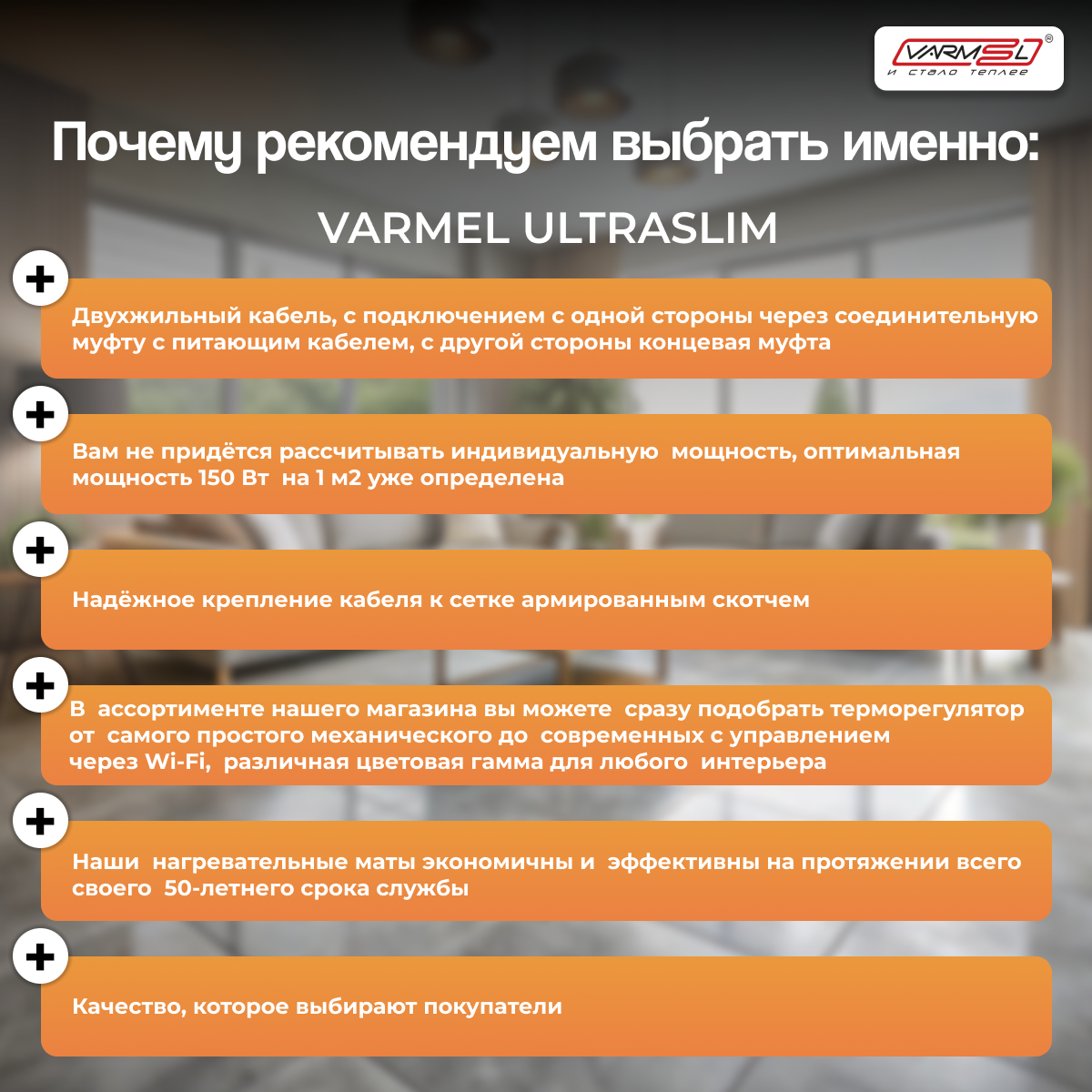 Электрический теплый пол Varmel Ultra Slim Twin 1,5 -225Вт информация: