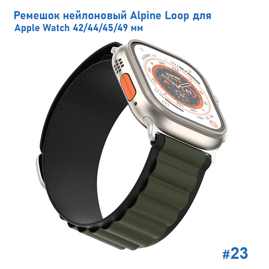 Отзывы на Ремешок нейлоновый Alpine Loop для Apple Watch 42/44/45/49 мм, на застежка, черный+хаки (23)