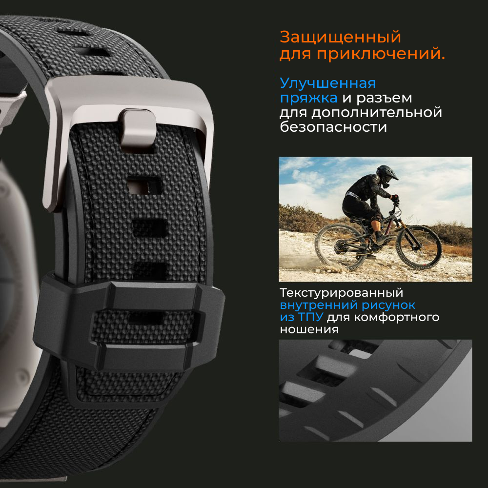 Отзывы на Ремешок Spigen на Apple Watch (49/45/44/42 mm) (AMP06065) Dura Pro Armor / Спиген для Эпл Вотч силиконовый, черный