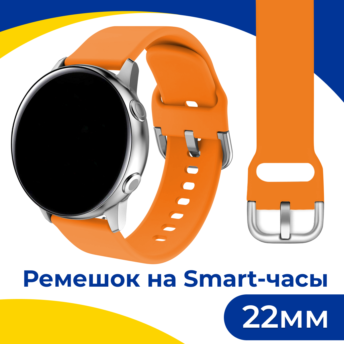 Силиконовый ремешок с застежкой на смарт часы Samsung Galaxy, Honor, Huawei, Amazfit, Garmin, Xiaomi Watch (22 mm) / Браслет на умные часы / Оранжевый информация: