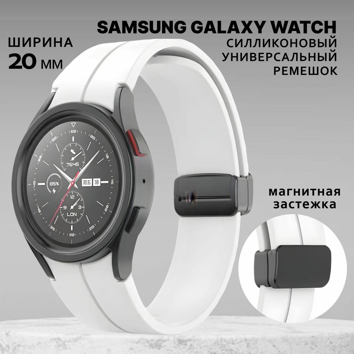 Силиконовый ремешок для часов Samsung Galaxy Watch 4 Classic 40 42 43 44 46 47 мм mm белый Браслет для самсунг галакси вотч 5 6 информация: