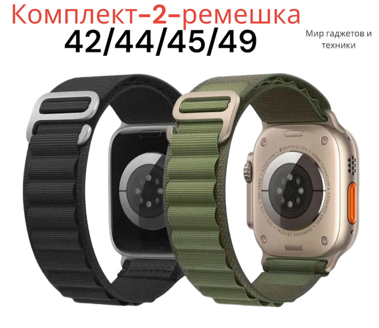 10 цен на Комплект тканевых ремешков для Apple Watch 42/44/45/49mm, series 1 2 3 4 5 6 7 8 /SE/SE 2022, Apple Watch Ultra (для эпл вотч) черный/зеленый