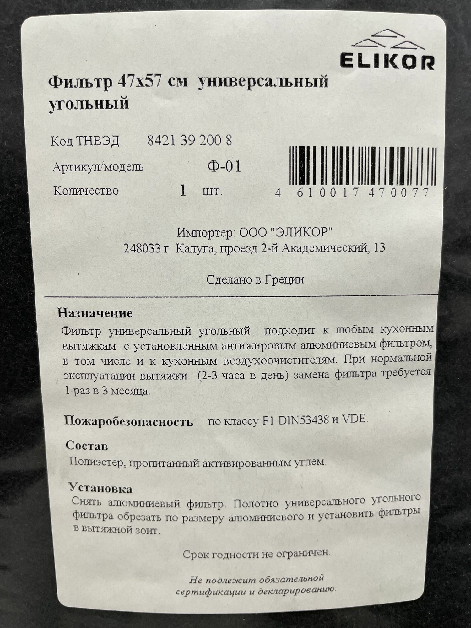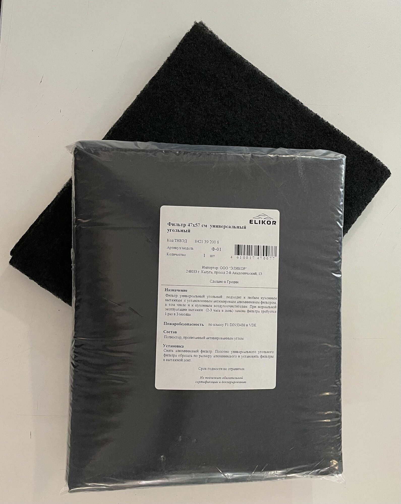 Фильтр угольный Elikor Ф-01 черный (1 штука) информация: