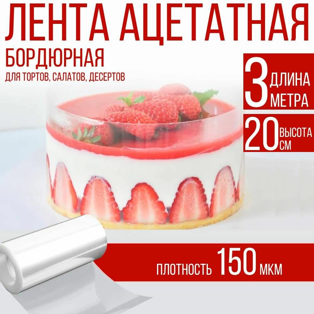 Лента ацетатная бордюрная для тортов 200 мкм, 100х20 см., 3 метра 359 ₽