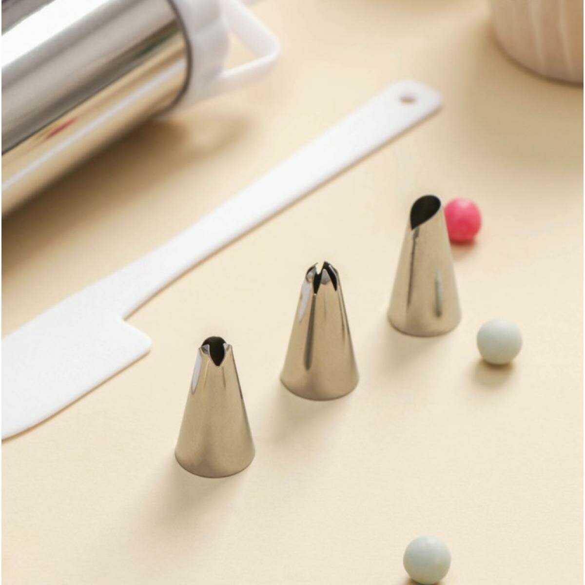 Отзывы на Шприц кулинарный металлический с насадками+лопатка 11*27 см.