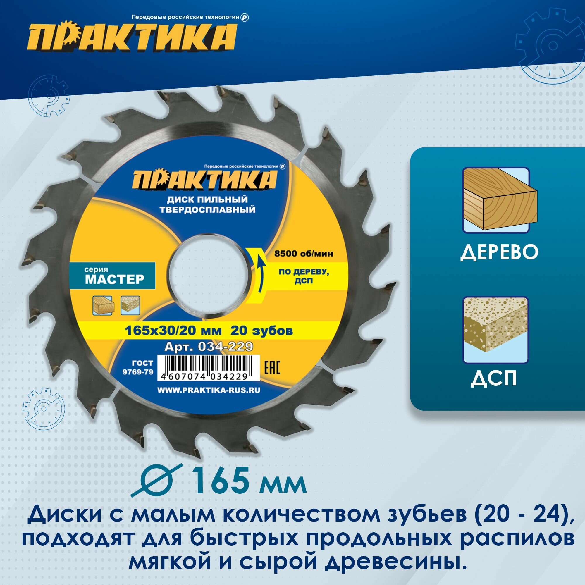 10 цен на Диск пильный твердосплавный по дереву, ДСП ПРАКТИКА 165 х 30-20 мм, 20 зубов