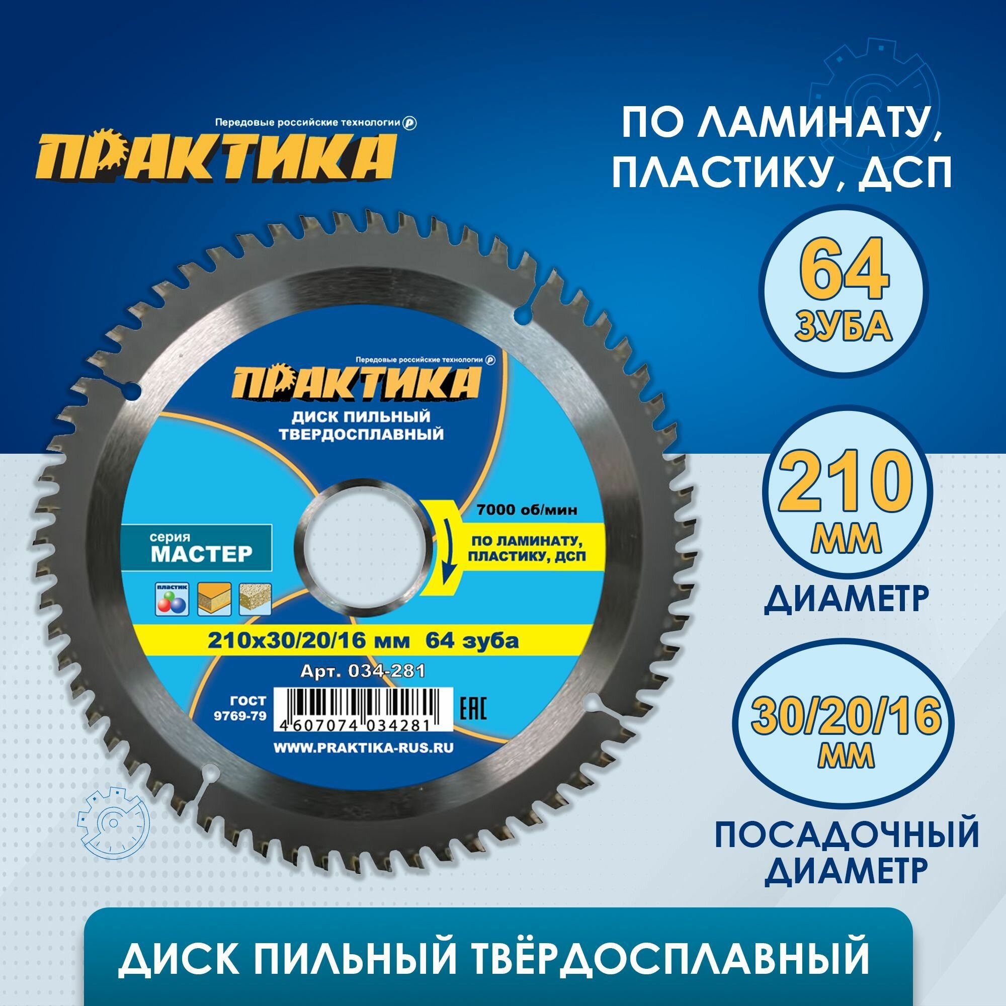 Диск пильный твердосплавный по ламинату ПРАКТИКА 210 х 30-20-16 мм, 64 зуба информация: