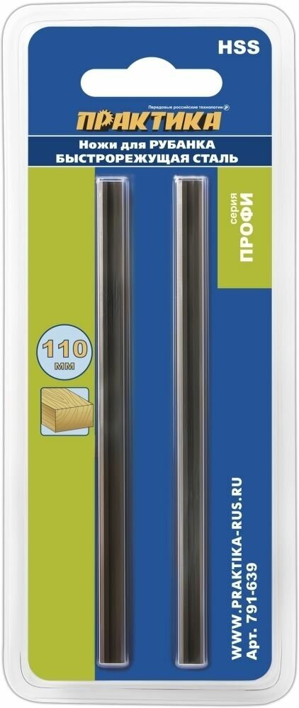 Нож для рубанка ПРАКТИКА 110 мм х 5,5 мм, быстрорежущая сталь (HSS), (2 шт) (791-639) информация: