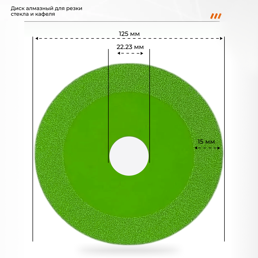Алмазный диск для резки стекла, керамики, 125мм/15мм кромка информация: