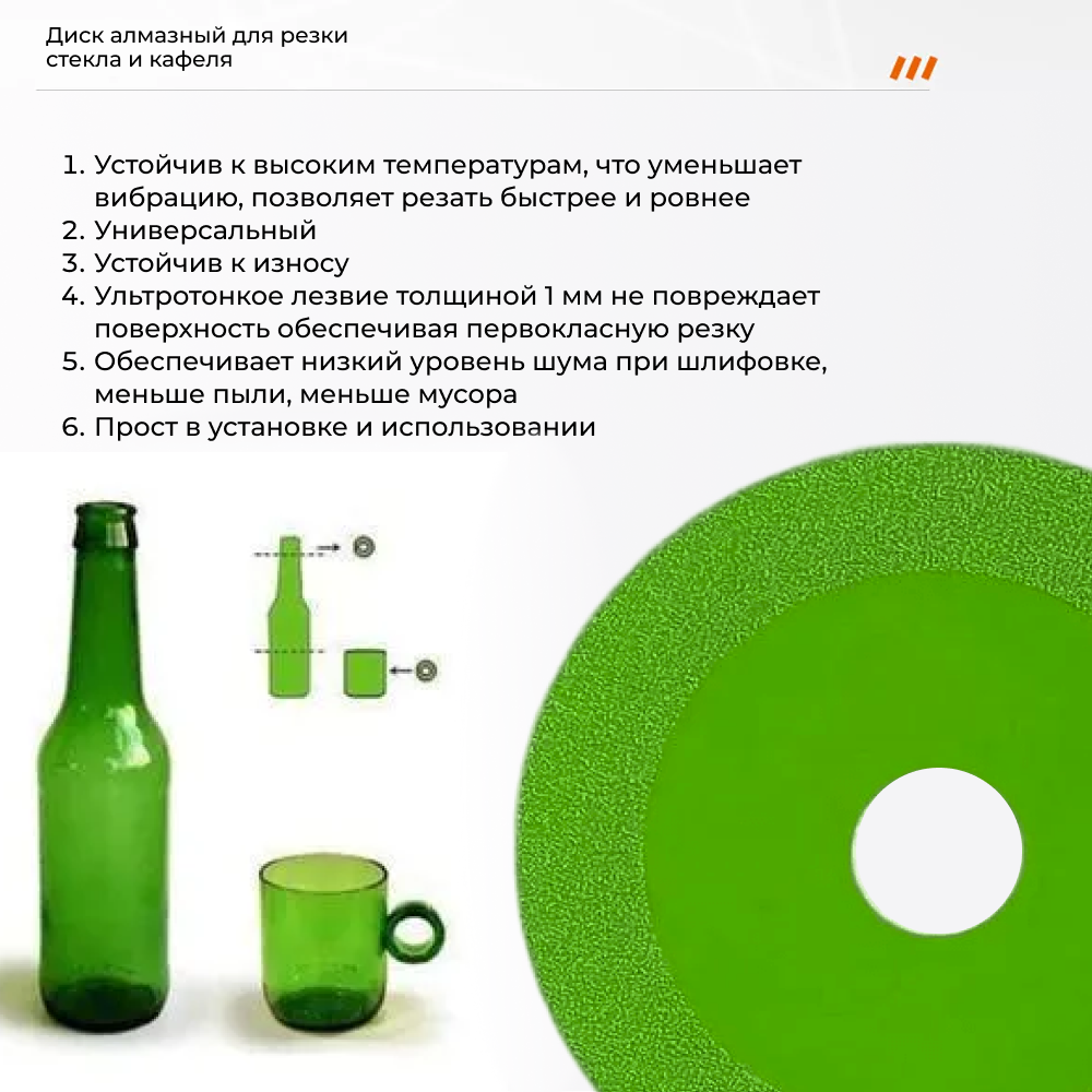 10 цен на Алмазный диск для резки стекла, керамики, 125мм/15мм кромка