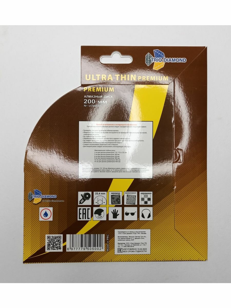 10 цен на Диск алмазный отрезной Сплошной Ультратонкий Ultra Thin hot press (200х25.4 мм) TRIO-DIAMOND