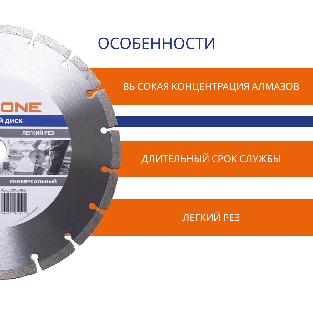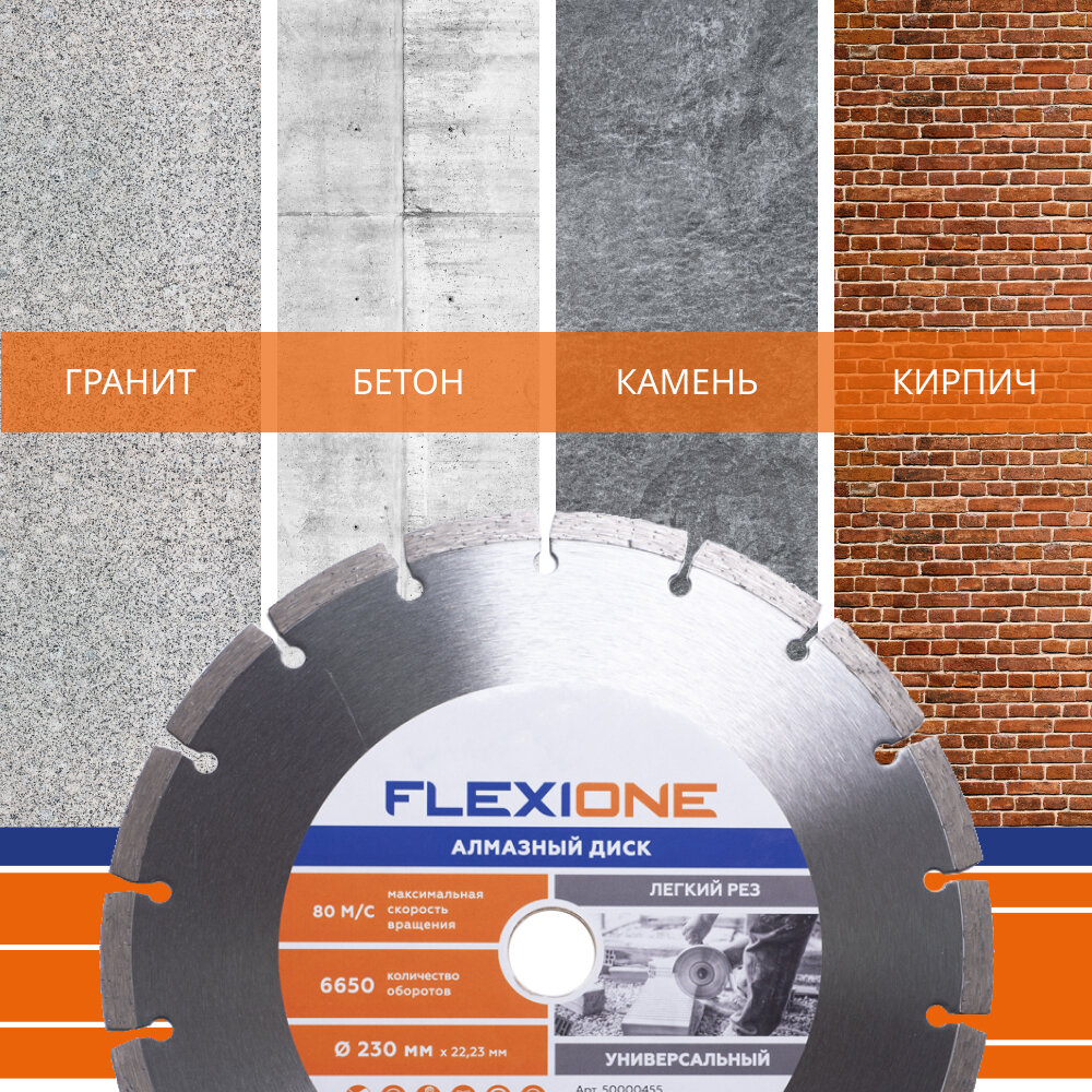 Алмазный диск с сегментированной кромкой Ø 230х22,23(Универсальный) FlexiOne информация: