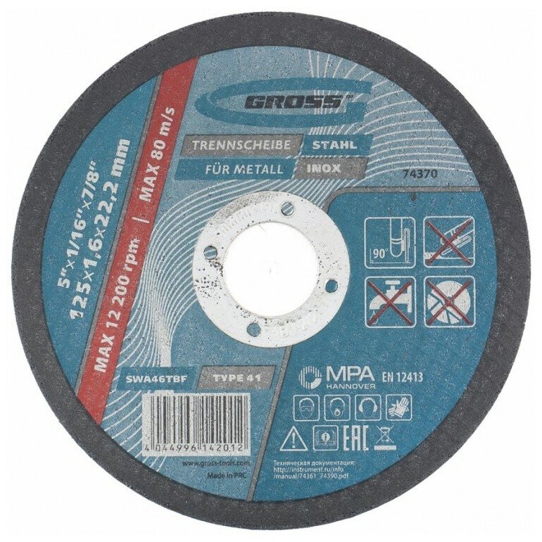 Круг отрезной по металлу, 125 х 1.6 х 22 мм Gross информация: