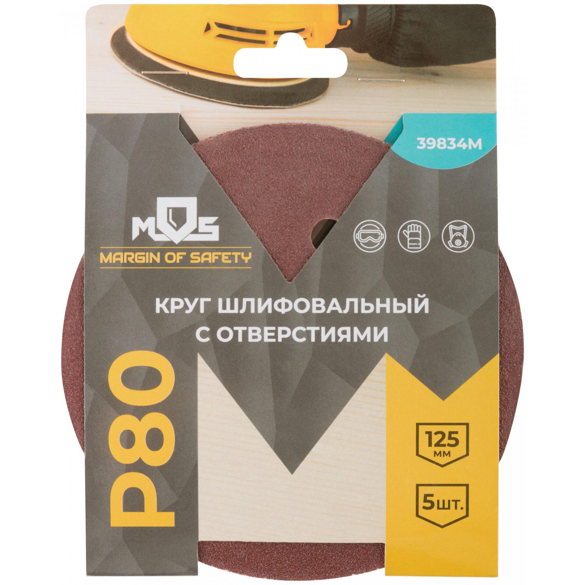 Круги шлифовальные с отверстиями (липучка), алюминий-оксидные, 125 мм, 5 шт. Р 80 информация: