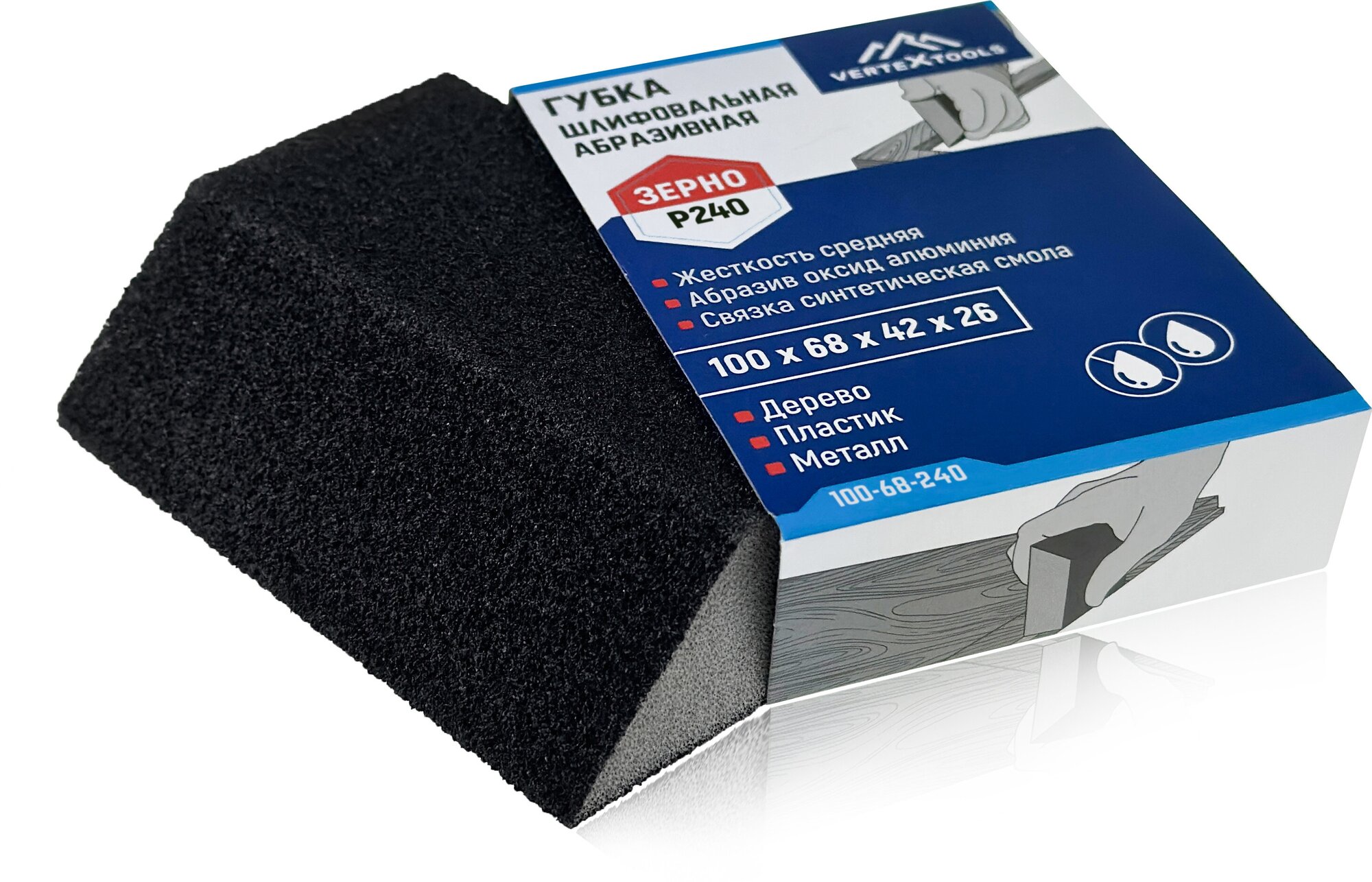 Губка для шлифовки абразивная VertexTools P240 100x68x42x26 информация: