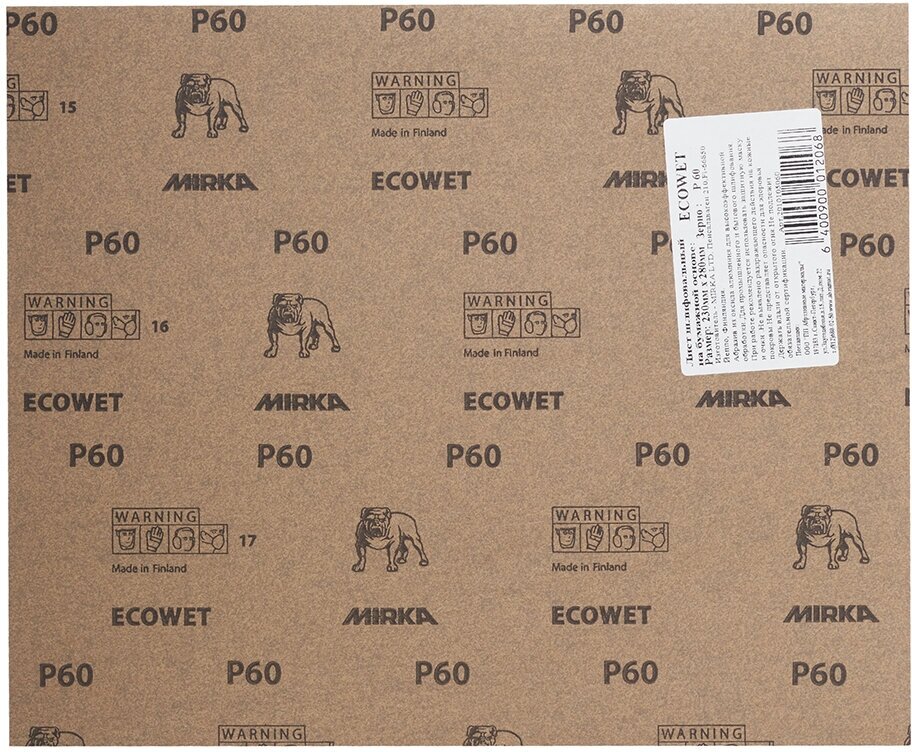 Наждачная бумага Mirka Ecowet 230х280 мм Р60 влагостойкая информация:
