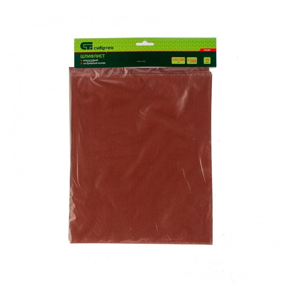 Шлифлист На Бумажной Основе, P 1500, 230 Х 280 Мм, 10 Шт, Влагостойкий// Сибртех Сибртех арт. 756287