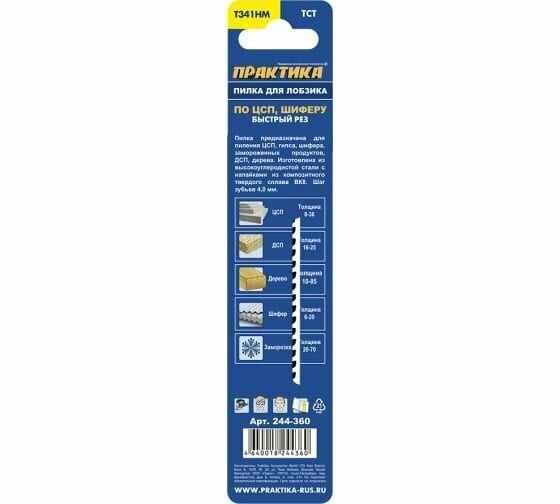 10 цен на Пилки для лобзика по ЦСП и шиферу ПРАКТИКА твердосплавные тип T341HM, 132 х 110 мм, быстрый рез, 1 шт.