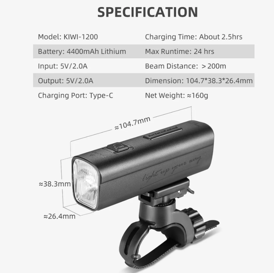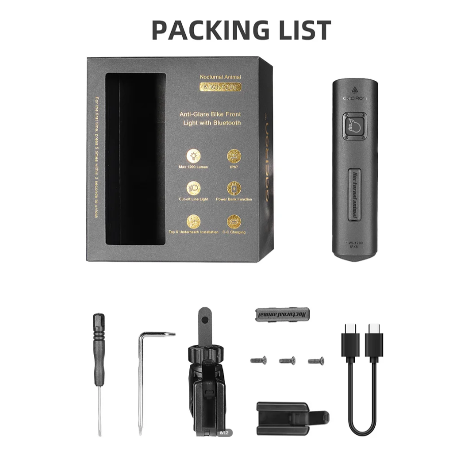 Фара велосипедная Gaciron Kiwi-1200 с пауэрбанком и аккумулятором информация: