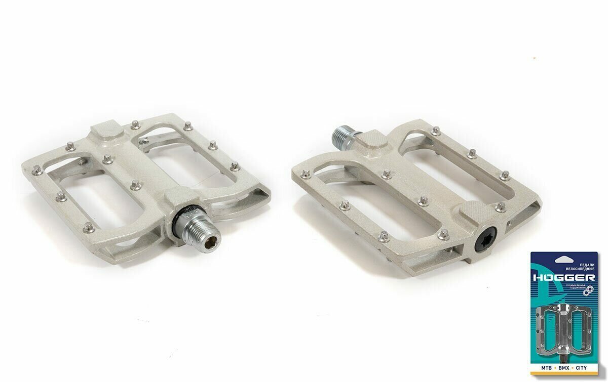 10 цен на Педали Hogger Platform Алюминиевые, 110X105Мм, Резьба 9/16", Со Сменными Шипами, Про, Цвет серый