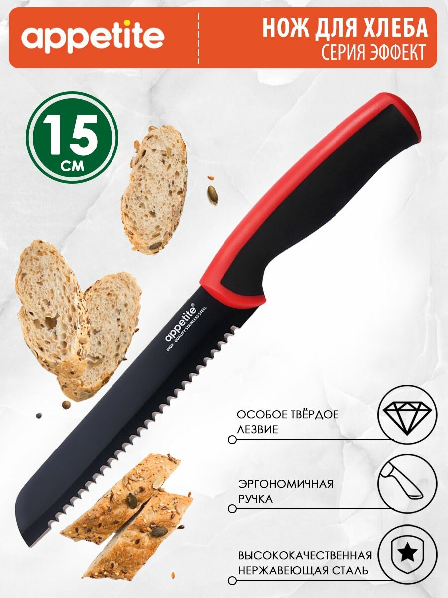 10 цен на Нож из нержавеющей стали Эффект для хлеба 15см красный ТМ Appetite