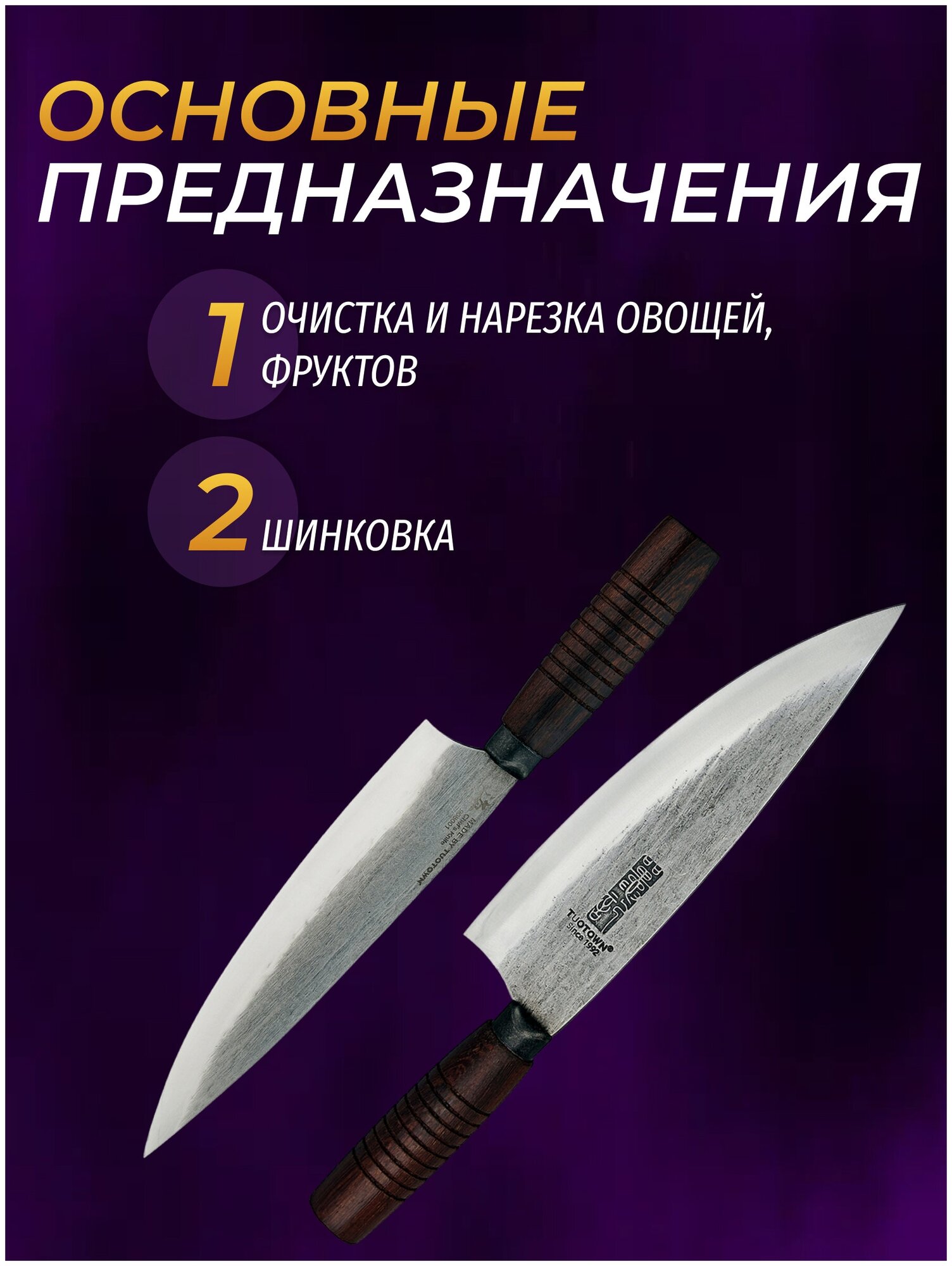 Поварской кованный шеф-нож Chef`s 20 см. TUOTOWN. Кованая углеродка/венге + фруктовый нож