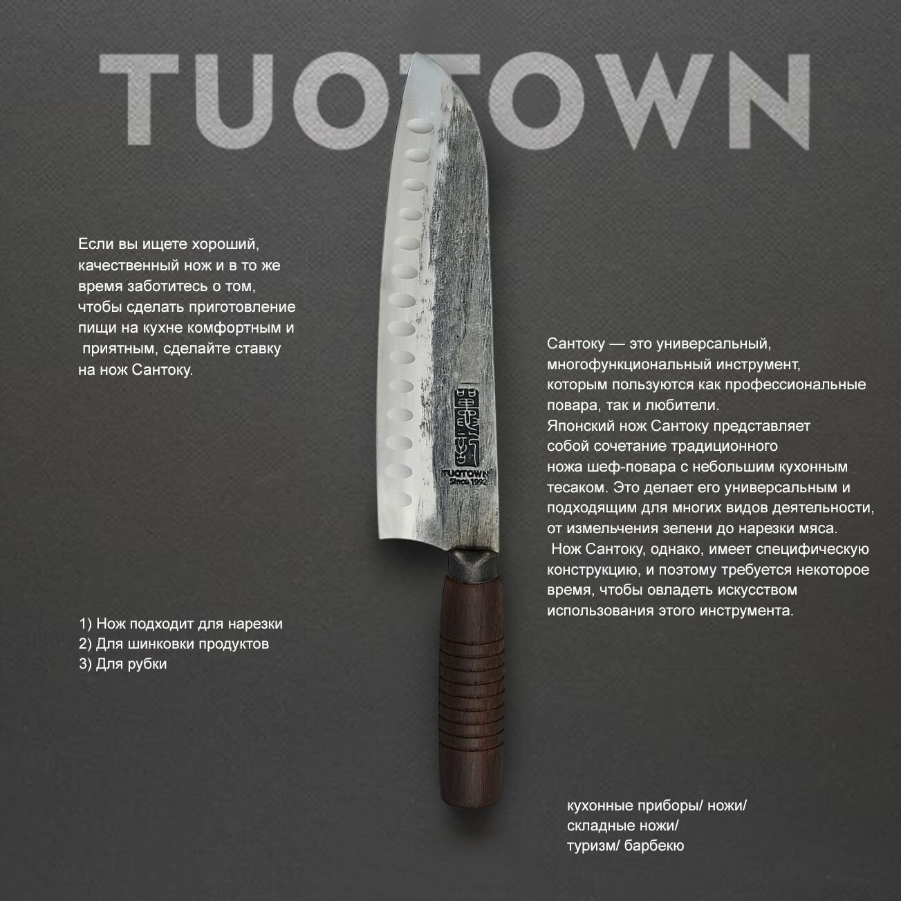Tuotown Поварской шеф-нож Сантоку 18 см — Santoku EARL кухонный нож для шинковки и нарезки. TuoTown. Сталь 1.4116, рукоять Пакка/ABS. + фруктовый нож.