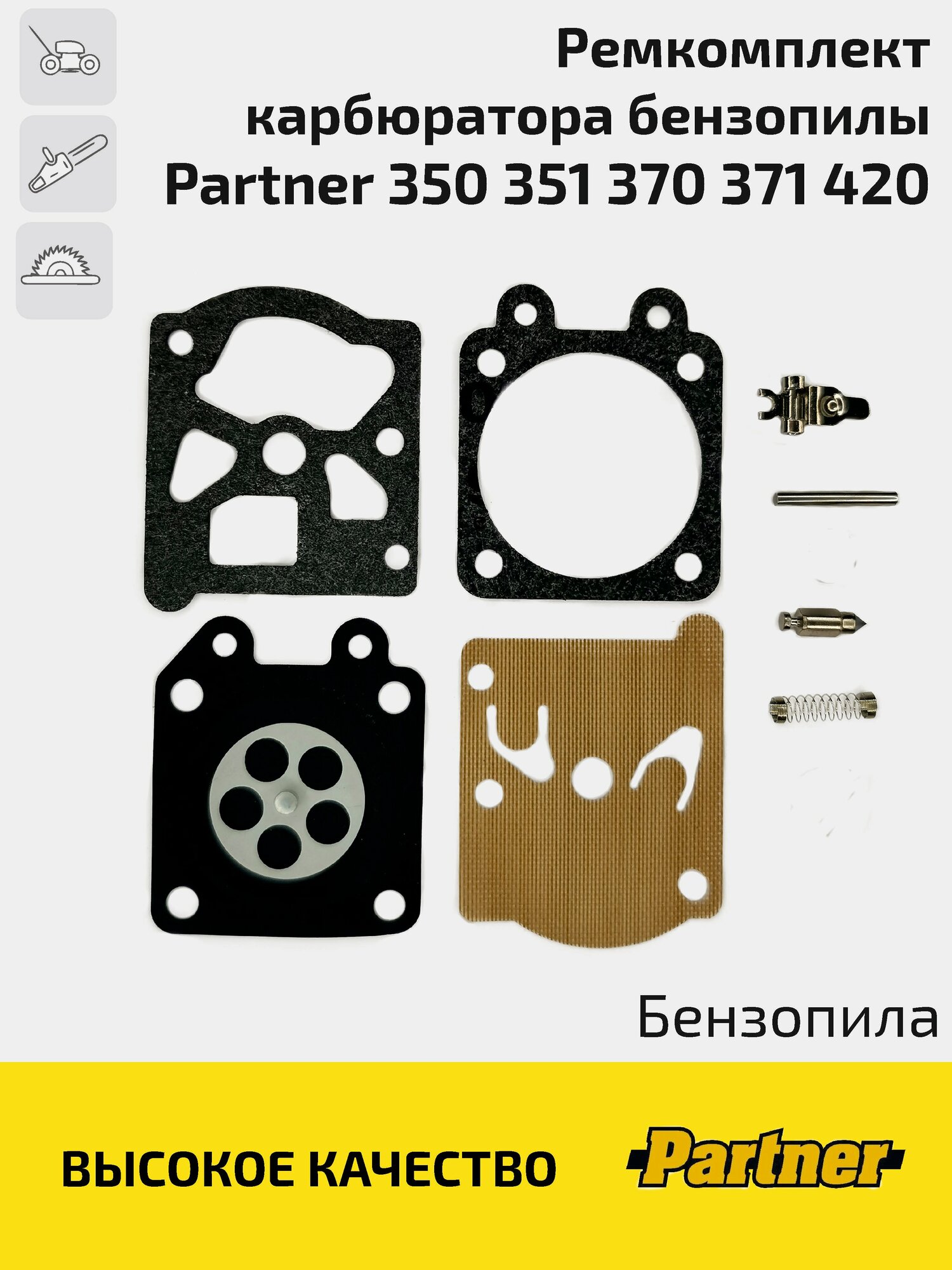 Отзывы на Ремкомплект карбюратора бензопилы Partner 350, 351, 352, 370, 371, 390, 391, 420 (Партнер)